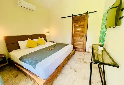 Adjacent to the main building is a second structure housing 4 more bedrooms, each with its own bathroom. This building also boasts a roofed terrace, providing another spot for guests to unwind and soak in the serene atmosphere.